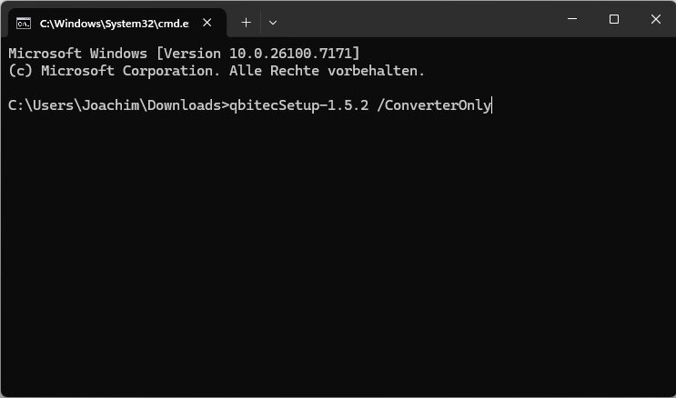 qbitecSetup-1.5.2 /ConverterOnly(replace "1.5.2" with the version you downloaded) - In the installer, select "Install for me only"