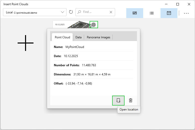 https://mycompany.test/potree/data - Click the "Insert" button and select one of the insert modes