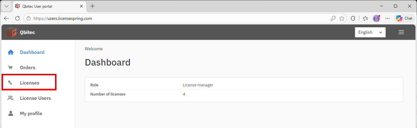 Access the licensing portal, LicenseSpring and log in using the Company code QBITEC along with the email and password provided in your registration email.