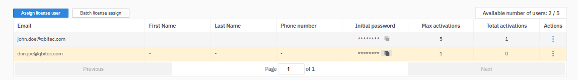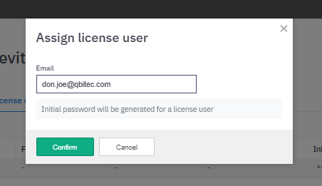 A new license user will be created as long as the maximum number of license users is not exceeded (see License Details). Copy the Initial password and provide these credentials to the new license user, who will then be able to activate the license and change the initial password.