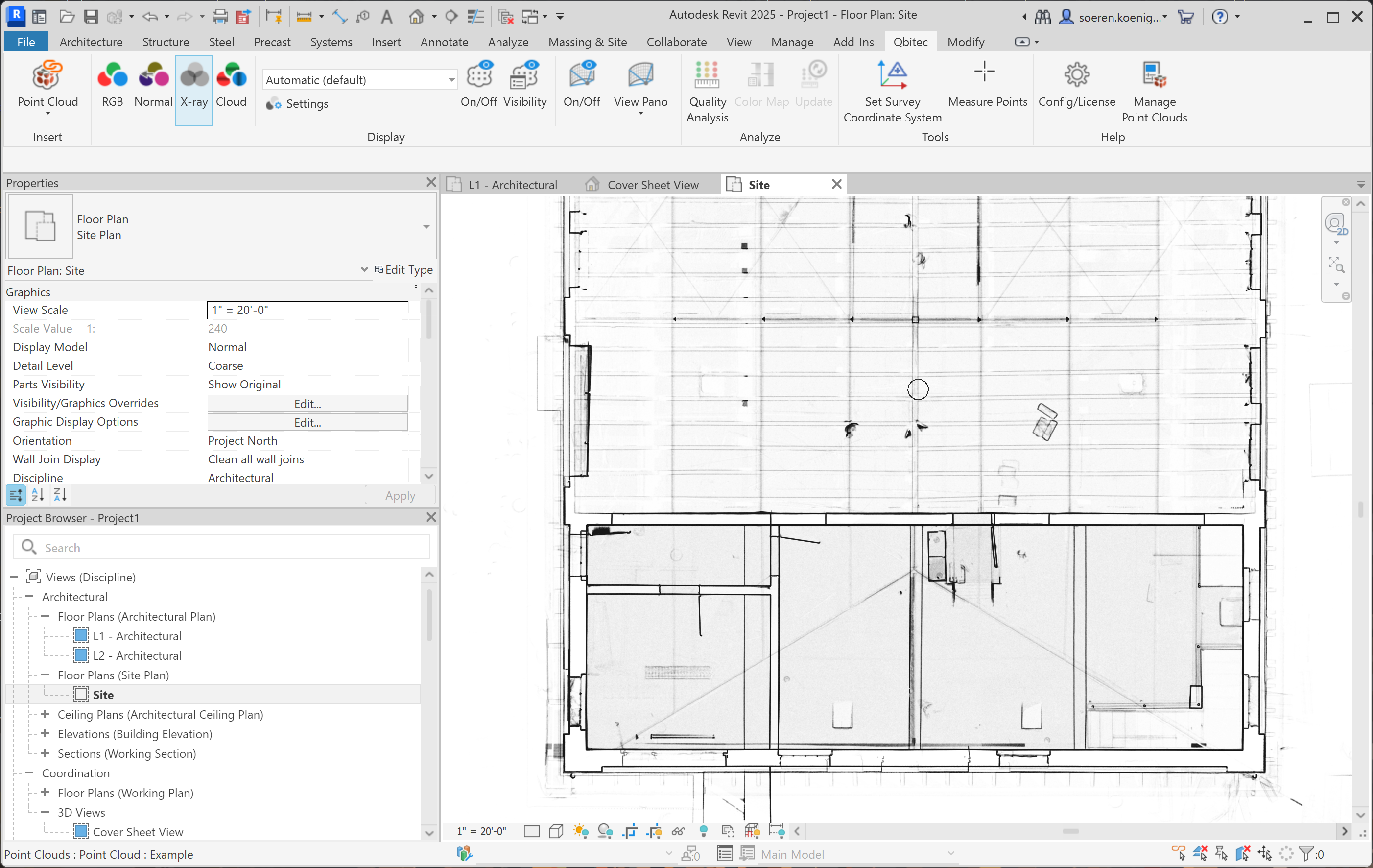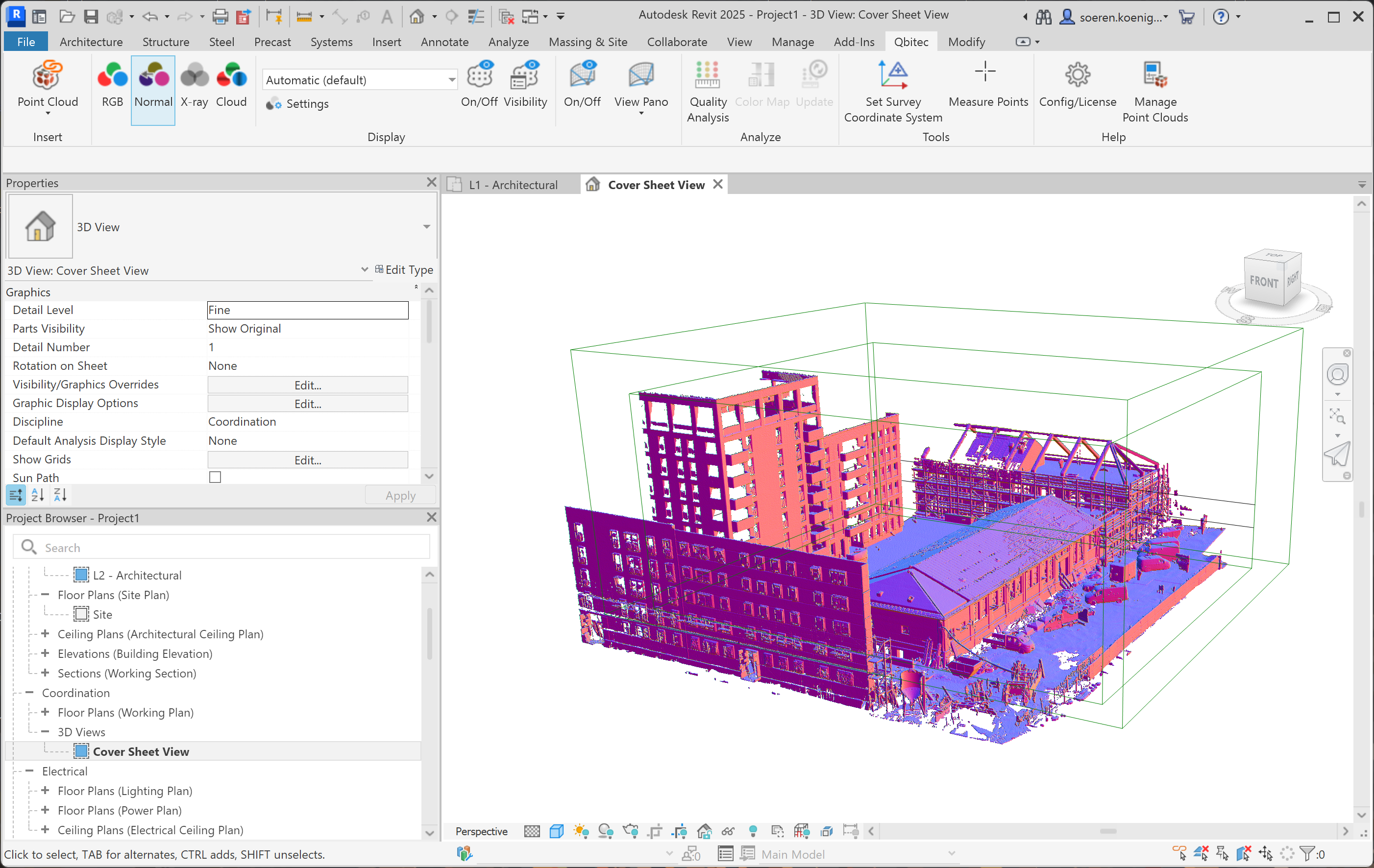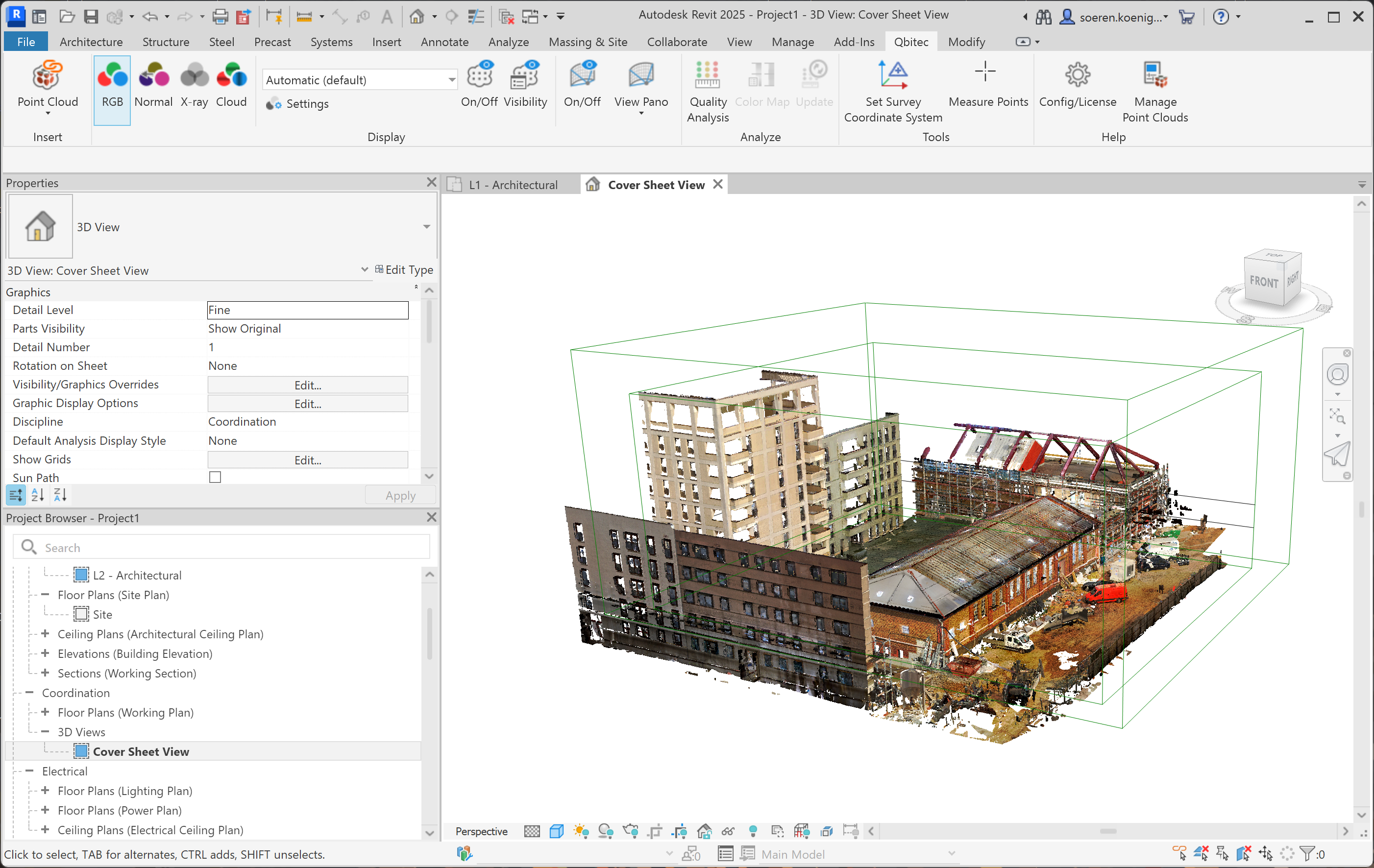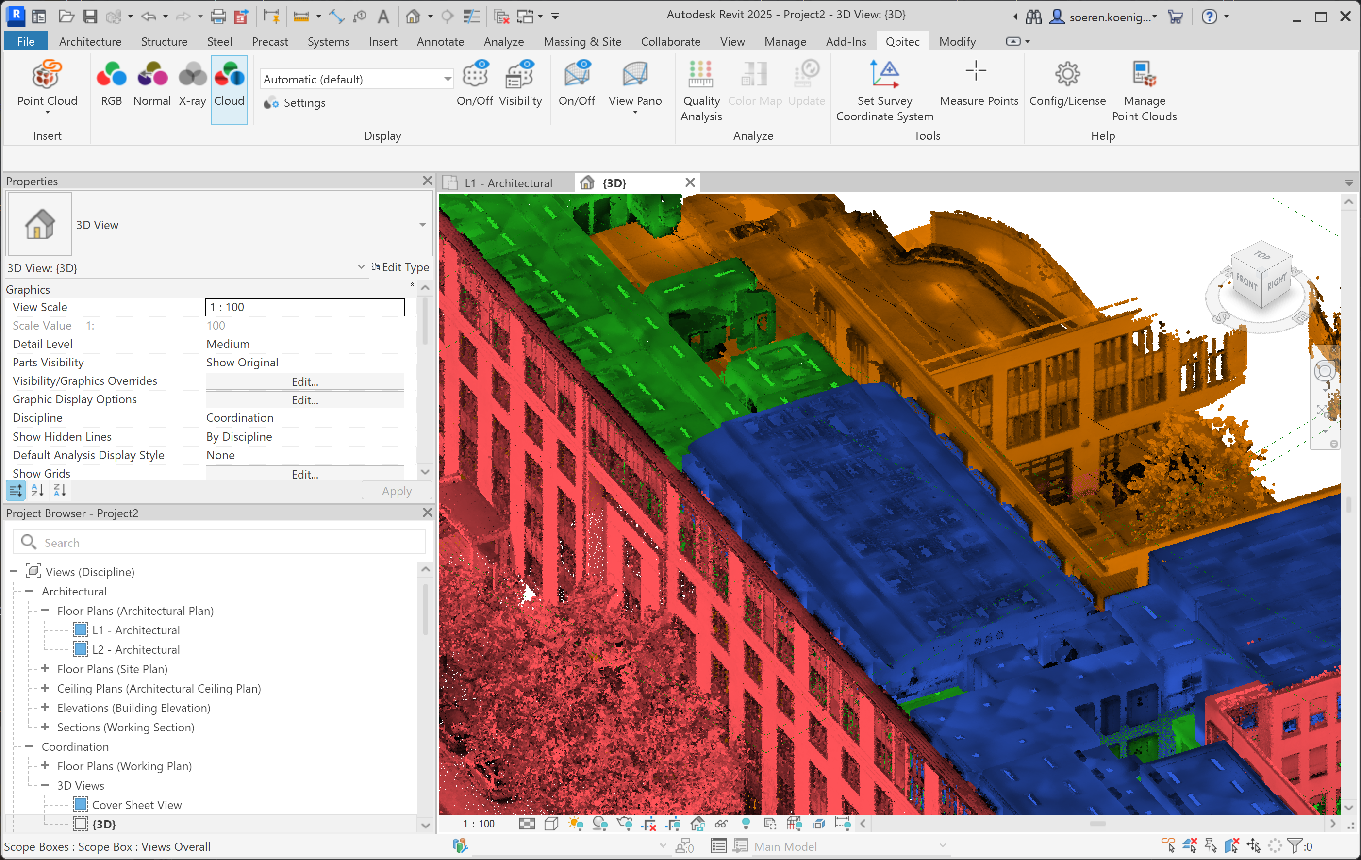 To switch between the different types of point cloud rendering you can use the Color Mode Selector inside the Qbitec ribbon: